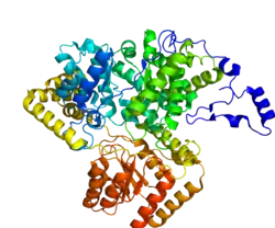 Methylmalonyl-CoA mutase (MCM), mitochondrial, also known as methylmalonyl-CoA isomerase, is a protein that in humans is encoded by the MUT gene. This vitamin B12-dependent enzyme catalyzes the isomerization of methylmalonyl-CoA to succinyl-CoA in humans. Mutations in MUT gene may lead to various types of methylmalonic aciduria.[5]