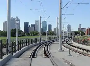 Testing began in July 2013,[8] and the line began operation in September 2015 with restrictions.[4][17][19][20][21] There were three delays in beginning operations on the line: one from April to June 2014, one from June to December 2014, and another from December 2014 to February 2015. The delays were caused by issues with the signalling system built by Thales.[22][23][24] Thales gave control of the system to the City of Edmonton in March 2015, but failed to provide adequate documentation to place the line into service.[19] In February 2017, trains were cleared to travel at 50 km/h.[25] The Thales signalling system used communications-based train control (CBTC) where trains occupy a "footprint", measure, and adjust their operation relative to the next train in front of them, hence the term "moving block" (as opposed to a traditional fixed block signal where each block is occupied by a train).