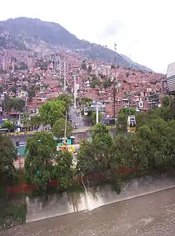 Metrocable is a gondola lift system implemented by the City Council of Medellín, Colombia, with the purpose of providing a transportation service that complements the Medellín Metro. It was designed to reach some of the city's informal settlements on the steep hills that mark its topography. It is largely considered to be the first urban cable propelled transit system in South America. The transportation infrastructure is already established and has been in service since 2004, although there are currently no official links between the gondolas themselves and the Metro line.
