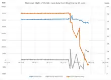 The Islamic State's Sinai branch said that it brought down the airliner. Wassim Nasr, France 24's expert on jihadi movements, said that the IS group has never claimed an attack they did not commit.[14] Russian media outlets said that the pilot reported technical problems and had requested a landing at the nearest airport before the A321 went missing. This claim was disputed by other sources, including the Egyptian authorities, and subsequent analysis of the flight recorder data confirmed that no distress or diversion request was given.[37][38] The Egyptian Civilian Aviation Ministry issued a statement that indicated the flight was at an altitude of 31,000 ft (9,400 m) when it disappeared from radar screens after a steep descent of 5,000 ft (1,500 m) in one minute. Flightradar24 shows the aircraft climbing to 33,500 ft (10,200 m) at 404 kn (748 km/h; 465 mph) before suddenly descending to 28,375 ft (8,649 m) at 62 kn (115 km/h; 71 mph) approximately 50 km (31 mi; 27 nmi) north east of Nekhel, after which its position was no longer tracked.[39] A bomb exploded in the aircraft, causing uncontrolled decompression, and the aircraft disintegrated in mid-air.[40] All 224 passengers and crew died.[38]