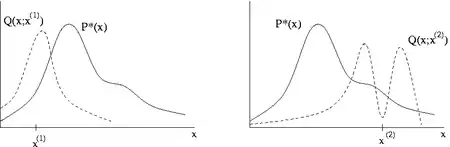 - Initialization: Choose an arbitrary point to be the first observation in the sample and choose an arbitrary probability density (sometimes written ) that suggests a candidate for the next sample value , given the previous sample value . In this section, is assumed to be symmetric; in other words, it must satisfy . A usual choice is to let be a Gaussian distribution centered at , so that points closer to are more likely to be visited next, making the sequence of samples into a random walk[lower-alpha 2]. The function is referred to as the proposal density or jumping distribution.