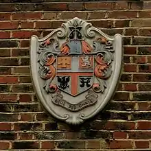 Coat of arms shown affixed to Orwell Court, municipal housing in Petherton Road