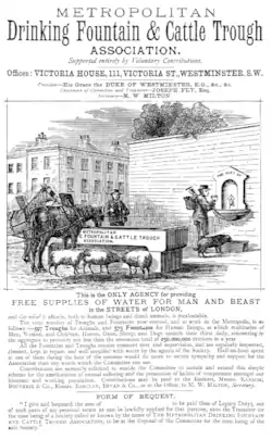 | Wikimedia Commons has media related to Metropolitan Drinking Fountain and Cattle Trough Association. |