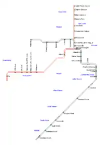 | Electrification | 750 V DC third rail[3] | ||||||||||||||||||||||||||||||||||||||||||||||||||||||||||||||||||||||||||||||||||||||||||||||||||||||||||||||||||||||||||||||||||||||||||||||||||||||||||||||||||||||||||||||||||||||||||||||||||||||||||||||||||||||||||||||||||||||||||||||||||||||||||||||||||||||||||||||||||||||||||||||