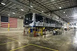 After reevaluating the bids from the builders, without taking local geographic preference into account, Miami-Dade reaffirmed its selection of AnsaldoBreda,[45] and in November 2012, approved a $313 million purchase of 136 new Metrorail cars from the company.[46] Miami-Dade issued the notice to proceed the following month, with the cars expected to be delivered over the course of several years until 2017.[47] By the time the custom rail-car building facility in Medley was completed in early 2016, AnsaldoBreda had been purchased by Hitachi Rail and the full rollout was pushed back to 2019, beginning gradually from 2017.[48] The first trainset entered service in early December 2017.[49] The delivery of the cars fell behind schedule once again due to flooding at the Hitachi Rail factory in West Plains, Missouri, and in February 2018 it was announced that the final replacement cars would not arrive before 2020. The shortage of replacement cars resulted in some Metrorail runs being operated as two-car trains.[50]