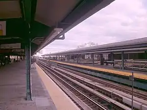 Some evening rush hour 7 local trains terminate at this station by using the express track.[6] West of the station, there are switches between the local tracks, the express track, and the northern layup track to 111th Street. East of the station, switches allow trains on the express track in either direction to switch to the local track, but not vice versa.[29][27]