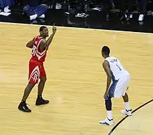 On October 30, 2008, Artest received his first technical as a Houston Rocket, as he raced towards a group of Dallas Mavericks players and then quickly went to Yao Ming who bumped Josh Howard after play stopped. Artest was trying to pull Yao away from the play and to the foul line, but contact was made with Maverick players. The TNT broadcast crew felt that this technical was unwarranted and reckoned it was based upon Artest's prior reputation as a feisty player in the league. In the playoffs, Artest helped the Rockets advance past the first round for the first time in 12 seasons.[23] In Game 2 of the second round against the Los Angeles Lakers, Artest, who was battling for rebounding position with Kobe Bryant, was elbowed in the neck by Bryant, which was later ruled to be a Type 1 flagrant foul. After being called for an offensive foul, Artest was indignant and proceeded to antagonize Bryant after the play, which eventually led to an ejection by Joe Crawford.[24] In Game 3, Artest was again ejected in the fourth quarter after a hard foul on Pau Gasol, who was attempting to dunk on a fast-break. It was determined the next day that the foul was not serious enough to warrant an ejection, and the flagrant foul was downgraded.[25]
