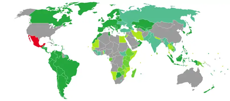 Visa requirements for Mexican citizens are administrative entry restrictions by the authorities of other states placed on citizens of Mexico. In 2018, Mexican citizens had visa-free or visa on arrival access to 158 countries and territories, ranking the Mexican passport 21st in terms of travel freedom according to the Henley visa restrictions index.[19]