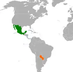 Mexico–Paraguay relations are foreign relations between Mexico and Paraguay. Both countries are full members of the Community of Latin American and Caribbean States, Latin American Integration Association, Organization of American States, Organization of Ibero-American States and the United Nations.