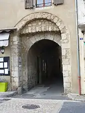The Camin Ferrat is the path connecting the Gévaudan and Causse Méjean with the famous abbey of Gellone at Saint-Guilhem–du-désert in Languedoc. It enters the city by the southern gate (the Pied de Ville) after the bridge over the Jonte (le Pont Vieux), and crosses the city. The tomb of Saint Guilhem and the supposed relics of the "Holy Cross" attract crowds. On this path in the early 11th century, the barons of Meyrueis erect a small priory of roman style dedicated to St. Peter (c. 1034?).[4] In 1042, the monks of the Benedictine Abbey of Gellone receive the priory as the gift from Bermont de Sauve and his brother Almérade d'Anduze.[5] In 1058, it was the turn of the powerful monastery of St. Victor of Marseilles to settle in the valley with the acquisition of Saint-Martin-des-Ayres (1 km east of the city). In the 12th century, the hospital of the Order of St. John of Jerusalem (Knights of Malta today) found an hospital and a church dedicated to St. John. Owners of large estates on the Causse Noir, they also create a mill in the city and a house for the commander.