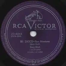 "Mi saoco" is a son montuno written and performed by Cuban singer Benny Moré. It was recorded in February 1955 and released as a single by RCA Victor later that year.[1][2] Moré's recording featured his Banda Gigante with Eduardo Cabrera "Cabrerita" on piano and a large horn section featuring Santiago Peñalver on saxophone. The song became a staple of Moré's live repertoire, and one of his performances was filmed for television and later shown on BBC Arena in 1984 and 1986.[3] That performance features Generoso Jiménez on trombone, who joined the Banda Gigante in April 1955, after the original studio recording.[2]