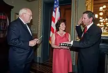 On March 11, 2005, President George W. Bush announced his intention to nominate Griffin to serve as the 11th Administrator of NASA. He was confirmed by the Senate on April 13, 2005. Griffin was subsequently sworn in by Vice-President Dick Cheney, a rarity for a NASA Administrator and signifying the importance NASA held to the Bush Administration. Administration even recalled its former NASA transition Team Director and Chief of Staff, Courtney Stadd,[17] to assist Griffin.[18]