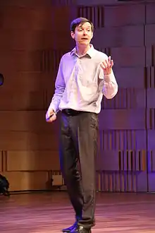 In October 2011, the Merseyside Skeptics Society (represented by Hall and Marshall), Chris French and Simon Singh set up a "Halloween Challenge" to Sally Morgan to have her alleged psychic abilities tested, to demonstrate that her claims regarding talking to the dead are true, otherwise she might, knowingly or unknowingly, be taking advantage of people's grief.[15] Morgan did not turn up at the press conference, but threatened to sue the skeptics for defamation through her lawyers instead.[16] Nevertheless, the MSS decided to make the Halloween Challenge an annual event and invited any psychic in the UK to take part.[17] When two psychics failed an experiment in October 2012, Marshall remarked: "While the result of our experiment doesn't disprove psychic ability, the fact that our mediums couldn't pass what they felt was a very fair and simple test does seem to suggest claims that these abilities exist aren't based in reality."[18] At the Australian Skeptics National Convention 2014 in Sydney, Marsh lectured about pseudoscience and the channelling of spirits.[19]