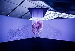 Murphy creates every piece carefully considering the viewer and the experience they will have when seeing the piece.[9] His large-scale installations "dominate the viewer's physical and mental space, captivating the critical thought process."[6] His work at first looks like an unorganized composition of material, but when viewed from a proper angle, becomes a highly organized suspended three dimensional graphic image.[10] Murphy's breadth of work ranges "from sound installations utilizing pools of water and live cellos to the incorporation of shadows as shading. Murphy's ability to think outside the box, and his technical skill to bring the concepts to fruition, make his work a fun, imaginative and accessible experience."[11]