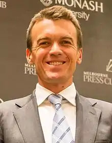 Michael Rowland began his current career for ABC by presenting on ABC News Breakfast since the launch of ABC News 24 in July 2010.[1] On Monday, May 2011, the News Breakfast hosted by Virginia Troili and Michael Rowland, moved from the ABC2 channel to ABC1. Through this move, News Breakfast had new segments such as "The Party Line", with interviews with political leaders and newsmakers. This also changed the news focus on local and regional issues in Australia and aimed to move the presenter around to where crises were occurring.[24] In 2019, Rowland was a live correspondent for the show, reporting on the wild bushfires that struck Australia and interviewing firefighters and residents of towns such as Wytaliba in north-east New South Wales.[25] Rowland has also interviewed a large array of Australian ministers such as Stuart Robert, the Minister for Employment, Workforce, Skills, Small and Family Business, the Trade Minister Dan Tehan regarding the distribution of vaccine in Australia, Karen Andrews the minister for Home Affairs, and Josh Frydenberg the Treasurer of the Commonwealth of Australia are just some examples of important Australia minister Michael Rowland has interview individually.[26][27][28][29] During his time on News Breakfast, he has also had the opportunity to interview every sitting Prime Minister of Australia from the past decades,[30][31][32][33][34] including Kevin Rudd, Julia Gillard, Tony Abbott, Malcolm Turnbull and Scott Morrison.[35][36]