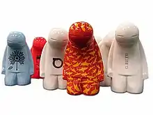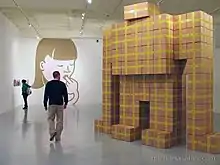 Michael Salter (born 1967)[2] is an American contemporary artist and educator.[3] Salter works in a variety of media, including drawing, painting, digital art, animation, kinetic sculpture,[4][5] and sculptural assemblage.[6] His work often references and subverts the visual language of corporate branding and graphic design,[5] and reflects his desire to, in his words: "sort out the cacophony of visual noise in order to rethink meaning, motive, perception and narrative."[7] His work has been described as postmodern, whimsical,[8] quirky, unsettling,[6] cryptic,[4] and thought-provoking.[5] Salter is perhaps best known for his giant Styrobots - a series of site-specific installations which rise ceiling-high to dominate their space.[5]