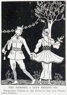 Mac Liammóir, now calling himself "Michael Willmore", made a brief return to the stage in February 1917, in Felix Gets a Month, a "whimsical comedy" at the Haymarket Theatre.[2][7] The following month he went with O'Keefe and her mother to Ireland, the former having contracted tuberculosis and been prescribed "fresh air", the latter anxious to escape Zeppelin raids. Fitz-Simon suggests that Mac Liammóir's motive was to escape conscription into the army in the latter stages of the First World War.[1]