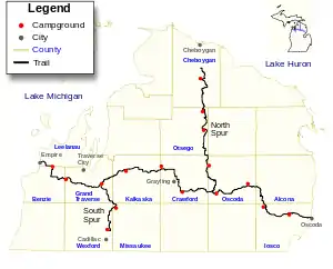 | Trailheads | Lake Michigan, Empire, Michigan; Lake Huron, Oscoda, Michigan |