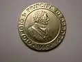Sealandic coins, from left to right: Cupronickel Half Dollar, Silver One Dollar and Bronze Quarter Dollar