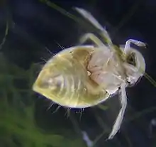 The male of this species produces its underwater courtship song by stridulating a ridge on its penis across corrugations on its abdomen. The area involved measures only 50 micrometres across, or about the thickness of a human hair. A team of biologists and sound engineers from France and Scotland have recorded M. scholtzi producing sound up to 99.2 decibels, a volume comparable to a passing freight train.[2] The noise was so unexpectedly loud that the engineers checked the calibration of their instruments. It is classified by Guinness World Records as the loudest penis.[3] Almost all volume is lost when sound moves from water to air, but even so remains audible to humans walking along the pond shore. This species is considered the loudest of all animals for its size.[2] Despite knowing the mechanism of its sound production, researchers are still mystified by the volume produced and feel that once the process is understood, it could open up a useful avenue in ultrasonics.[4]