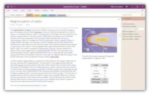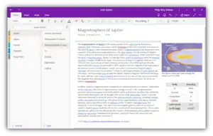Microsoft OneNote is a note-taking program for free-form information gathering and multi-user collaboration. It gathers users' notes, drawings, screen clippings, and audio commentaries. Notes can be shared with other OneNote users over the Internet or a network. OneNote is available as part of the Microsoft Office suite,[6] it is also available as a free, standalone app via the official website, the app stores of Windows 10, macOS, iOS and Android.[7] Microsoft also provides a web-based version of OneNote as part of OneDrive and Office for the web.
