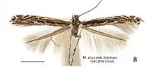 Micrurapteryx occulta is a moth of the family Gracillariidae. It is recorded from across North America in the northern half of the continent, in Canada from the Maritime Provinces (Newfoundland, New Brunswick, Nova Scotia) to British Columbia, north to northernmost Yukon. In the United States it has been found in Connecticut, Kentucky, Illinois, Colorado, Utah, Nevada, and California.[1] The habitat consists of meadows, the edge of forests, open ponderosa pine forests, alpine meadows, the sea shore, and probably other habitats, from sea level to high elevations in the mountains, where suitable hosts occur.