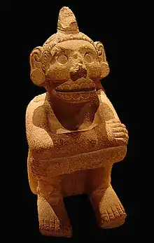 Two life-size clay statues of Mictlantecuhtli were found marking the entrances to the House of Eagles to the north of the Great Temple of Tenochtitlan.[4]
