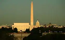 There are differing interpretations as to the composition of the Mid-Atlantic, with sources including in the region a number of states from New York to South Carolina.[7] A United States Geological Survey publication describes the Mid-Atlantic Region as all of Maryland, Delaware, the District of Columbia, Pennsylvania, and Virginia, along with the parts of New Jersey, New York, and North Carolina that drain into the Delaware and Chesapeake Bays and the Albemarle and Pamlico Sounds.[8] Sometimes, the region's nucleus is considered to be the area centered on the Washington metropolitan area, including Maryland, Delaware, Virginia, and West Virginia.[9] In contrast to other definitions (where the Mid-Atlantic overlaps the Northeast and Southeast), the United States Census Bureau defines the Middle Atlantic as a subregion of the Northeast consisting exclusively of New York, New Jersey, and Pennsylvania.[10]