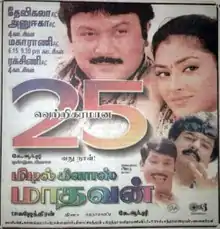 Middle Class Madhavan is a 2001 Indian Tamil-language romantic comedy film written and directed by T. P. Gajendran. The film stars Prabhu and Abhirami, while Vadivelu, Vivek, Manivannan and others in supporting roles. The film explores the travails of newlyweds who are forced to live in a joint family. The film was remade in Telugu as Mee Intikoste Yem Istaru Ma Intikoste Yem Testaru.[2] The music was composed by Dhina, and the film released on 18 May 2001.