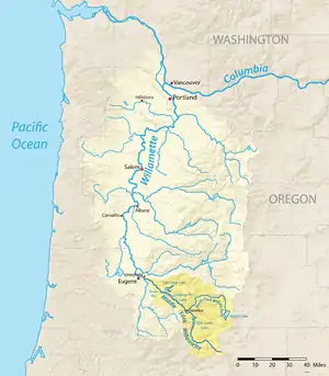 ![]() Map of the Willamette River watershed with the Middle Fork highlighted | |