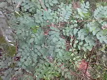 Indigo, a plant used to dye clothing, which could make the cloth blue. It has been regarded as an ingredient of dye for a long time. In Encourage Learning, an article of Xunzi, indigo was mentioned as a metaphor that students will be better than teachers. (Chinese: 青出于蓝而胜于蓝)[8] In 1940–1956, the output of indigo continued to increase. However, after that time, with the importation of foreign dye, the production of indigo has been decreased. Nowadays, there are only a few people planting indigo.[9]