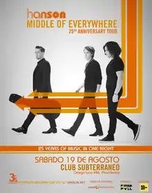 The Middle of Everywhere: 25th Anniversary Tour (also known as the Middle of Everywhere Tour) is the fourteenth concert tour by American band Hanson. The tour is a celebration to mark when the band formed in 1992. Beginning June 2017, the tour visited Europe, Australasia and the Americas.