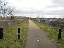 After being derelict for decades, the viaduct was brought back into use as a footpath and cycleway in 2012, as part of a £1 million scheme by Rugby Borough Council and the cycling charity Sustrans, in order to create a traffic free route from Rugby town centre to the northern suburbs of Newbold and Brownsover, and the Brownsover industrial estate.[4][1][5]
