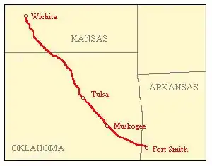 - The railroad also adopted the slogan, "Arkansas River Route," because much of its length paralleled that river between Wichita, Kansas and Fort Smith.[1]