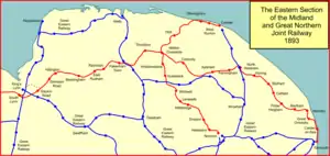 The Midland and Great Northern Joint Railway (M&GNJR) was a railway network in England, in the area connecting southern Lincolnshire, the Isle of Ely and north Norfolk. It developed from several local independent concerns and was incorporated in 1893. It was jointly owned by the Midland Railway and the Great Northern Railway, and those companies had long sponsored and operated the predecessor companies.