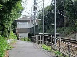 The station has a single side platform for bi-directional traffic, with a small one-story station building located alongside. The platform is short, and can service trains of only six carriages or less. . The station has automated ticket machines, Manaca automated turnstiles and is unattended..