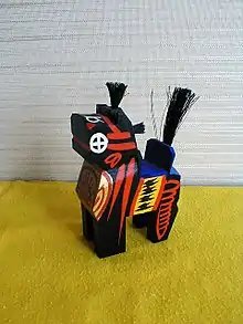 Miharu-goma (三春駒) are angular, brightly coloured, wooden toy horses produced as a folk art in Miharu, Fukushima, Japan.