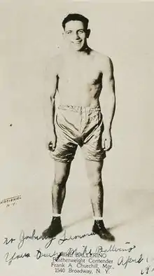 Ballerino was born to an Italian family in Asbury Park, New Jersey, on April 10, 1901. At the age of seventeen he began boxing for the Army in the Philippines, where he was stationed, and according to one source won the bantam championship of the Orient in a 20-round match. Many of his bouts were never documented. At the age of 18, he would become known as a skilled bantamweight in Manila.[2] He is not remembered as a polished boxer with refined, scientific technique, but a relentless and determined fighter who thrilled audiences. He lacked a frequent record of knockouts and a strong punch, but he made up for it with enthusiasm and a relentless attack.[3]