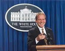 Michael Demaree McCurry (born October 27, 1954) is best known for having served in Bill Clinton's administration as the nation's 20th White House Press Secretary. He is a Washington-based communications consultant and is associated with the firm Public Strategies Washington, Inc.[1] He is also active within the administration of the United Methodist Church, serving as a lay delegate to the Church General Conference and on various denominational boards. He currently co-chairs the Commission on Presidential Debates.[2] Born in Charleston, South Carolina, he was educated at Princeton University and Georgetown University.