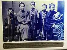 Mikimoto's wife was Ume, who was also his partner in creating the cultured pearl.[12] Mikimoto and his wife have five children: Rui (eldest daughter), Mine (second daughter), Yo (third daughter), Ai (youngest daughter), and Ryuzo (son).