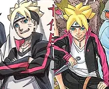 When the manga ended in 2014, Shueisha asked Kishimoto to start a sequel. However, Kishimoto rejected the idea and proposed that Ikemoto draw it based on the experience he had.[5] Kishimoto advised Ikemoto not to imitate his art style and instead make his own. While noting long-time fans might be disappointed with the fact that Kishimoto is not drawing Boruto, Ikemoto stated he would do his best in the making of the manga. Ikemoto mentioned he remained optimistic about his art style. Kishimoto also revises the manga's scenario.[6] Besides illustrating the manga, Ikemoto also provides illustrations for the Boruto light novels.[7] The manga had one million copies in print as of January 2017 while Studio Pierrot also produced an anime series based on it.[8]