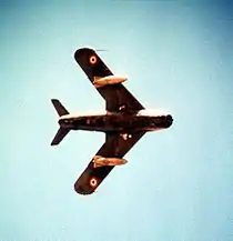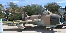 The MiG-17 formed a major part of the Arab air strength during the Six-Day War in June 1967.[44][45] The war started with a massive airstrike by Israel against Egyptian, Jordanian, Syrian and Iraqi airbases, with more than 150 Egyptian aircraft destroyed or damaged. Egypt's surviving MiG-17s were heavily deployed in ground attacks against Israeli forces in the Sinai.[44][46] The Soviet Union again replaced Egypt's losses after the war, and Egypt was soon involved in the War of Attrition, a sustained series of armed clashes on and over Sinai, with Egypt's MiG-17s continuing to be used in the ground attack role. While the MiG-17 was slower and shorter-ranged than the Sukhoi Su-7 that was the other main component of Egypt's ground-attack forces, the MiG-17 was more manoeuvrable and sustained lower losses.[47] From 1970, Egypt deployed detachments of MiG-17s to Sudan to support government forces during the First Sudanese Civil War.[48] The MiG-17 continued in use in the Yom Kippur War. Mig-17s were used during the Ofira Air Battle by Egypt. Egyptian and Syrian Mig-17s retired shortly after these wars.