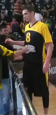 In 2014, he agreed to terms with Panionios, but he left the club before playing in a single game.[5] Later that season, he signed a one-year contract with AEK.[6] He sometimes came off the bench, while Dušan Šakota served as the team's starting power forward. He had a solid season with AEK, and in August 2015, the team re-signed him for the 2015–16 season.[7] In June 2016, he re-signed with AEK for the 2016–17 season.[8]