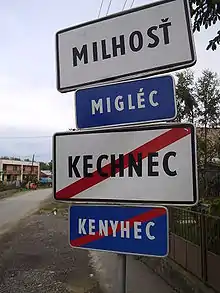 Milhosť (German: Mitterdeutschdorf, Mühlgast; Hungarian: Miglécnémeti) is a village and municipality in Košice-okolie District in the Kosice Region of eastern Slovakia. It is situated 21 km from Slovakia's second biggest city, Košice. Milhosť is surrounded by two neighbouring villages Kechnec and Seňa. Moreover, it is a border crossing village between Hungary (Tornyosnémeti) and Slovakia (Milhosť).