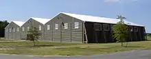 The complex includes two display hangars (one on each side of the main museum building) in one group of buildings, and in another group, a replica World War I-era wooden hangar, a maintenance hangar (entirely new, but an exact replica of a 1937 Works Progress Administration design), a restored authentic pre-WWII Luftwaffe metal hangar, and a set of three identical storage hangars painted to resemble British World War II hangars.[10][11][12]