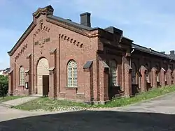 The Manege was built in 1880-1881, in a time when Finland was still part of the Russian Empire. Some architectural plans had been made already in 1875 but they were however rejected. Three years later architect Greifon's plan was considered the best alternative. The Manege was built using brick and floor was originally made of clay. Floor was re-constructed however in 1908 by using concrete as building material. Between the entrances on both ends of the building is a large hall. Originally there were heating ovens next to the entrances.[12]