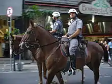 The mounted police is organized into regiments (Portuguese: Regimento de Polícia Montada), subdivided into squadrons (Portuguese: Esquadrão de Polícia Montada) and platoons of mounted police.