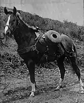 In World War II, many military units of the Soviet Red Army, sometime after the Battle of Stalingrad, took to using camels in the southern theatre of the war in order to transport ammunition, fuel for tanks and aircraft, food, water for kitchens, fuel, and even wounded Red Army soldiers. The use of these animals as means of transport was made necessary by the Kalmyk steppes' open terrain, its primitive roads and lack of water, as well as a shortage of adequate auxiliary vehicles in the Soviet armed forces.[5] A case that became famous was that of the Bactrian camel named Kuznechik ("grasshopper") that followed the Soviet Red Army in practically all its advance towards Germany.