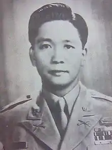 Marcos, who had received ROTC training in the University of the Philippines, was activated for service in the US Armed Forces in the Philippines after the attack on Pearl Harbor. He served as a 3rd lieutenant during the mobilization in the summer and fall of 1941, continuing until April 1942, after which he was taken prisoner.[3] According to Marcos' account, he was released from prison by the Japanese on August 4, 1942,[4] and US military records show that he rejoined USAFIP forces in December 1944.[4] Marcos' military service then formally ended with his discharge as a major in the 14th Infantry, US Armed Forces in the Philippines Northern Luzon, in May 1945.[5]