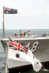 - FLAGS, PENNANTS & CUSTOMS,NTP 13 (B), NAVAL COMPUTER AND TELECOMMUNICATIONS COMMAND, 4401 MASSACHUSETTS AVE., N.W., WASHINGTON, D.C. 20394-5460, section 17.11, p. 17–5